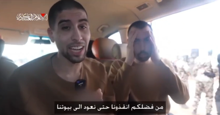 بثّت كتائب “القسام” الجناح العسكري لحركة “حماس” مقطع فيديو لعدد من الأسرى لديها الذين لم يفرج عنهم بعد وهم يتابعون مراسم تسليم عن عدد من الأسرى الآخرين للجنة الدولية في الصليب الأحمر صباح اليوم السبت.