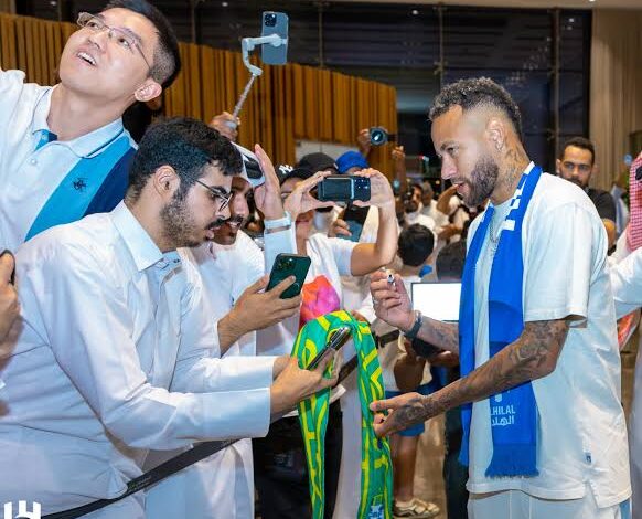 وجاء وصول نيمار للرياض بصحبة عدد من مرافقيه، وظهر النجم البرازيلي مُرتديًا “شال” الهلال، وحرص على التقاط الصور التذكارية مع بعض مُستقبليه، والتوقيع على قمصان النادي العاصمي، كما احتسى اللاعب القهوة السعودية.