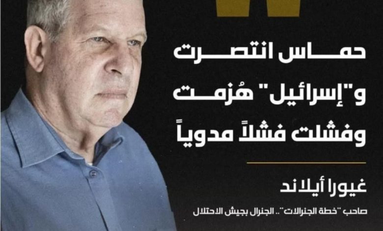 علق صاحب “خطة الجنرالات الإستراتيجية لتحويل شمال غـ ـزة إلى منطقة عسكرية”غيورا آيلاند، ” في لقاء تلفزيوني على اتفاق وقف إطلاق النار، معتبرًا أن “حـ ـمـ ـاس انتصرت وإسـ ـرائـ ـيل فشلت فشلاً مدوياً”.