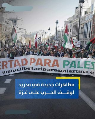 *مسيرة حاشدة في العاصمة الإسبانية مدريد دعماً لفلسطين تطالب بإيقاف المجازر الإسرائيلية بحق الفلسطينيين في قطاع غزة
