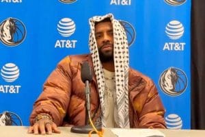 تضامنا مع قطاع غزة..  ظهر نجم كرة السلة الأمريكية كايري إيرفينغ مرتديا الكوفية الفلسطينية خلال المؤتمر الصحفي بعد مباراة فريقه دالاس مافركس. في رسالة رمزية للتضامن من أهل غزة ضد حرب الإبادة التي تشنها اسرائيل ضد المدنيين والأطفال والنساء  طوال 44 يوما .
