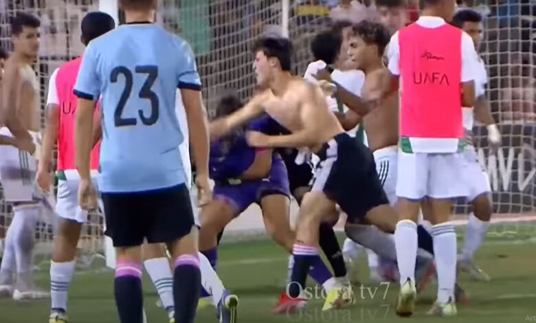 بالفيديو : اشتباكات بين لاعبي المغرب والجزائر في نهائي كأس العرب للناشئين