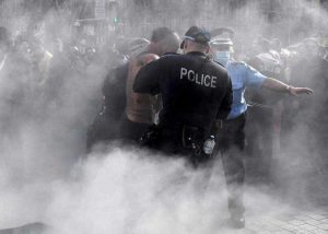 واستخدمت الشرطة الغاز المدمع والرصاص المطاطي ورذاذ الفلفل لتفريق بعض الحشود.