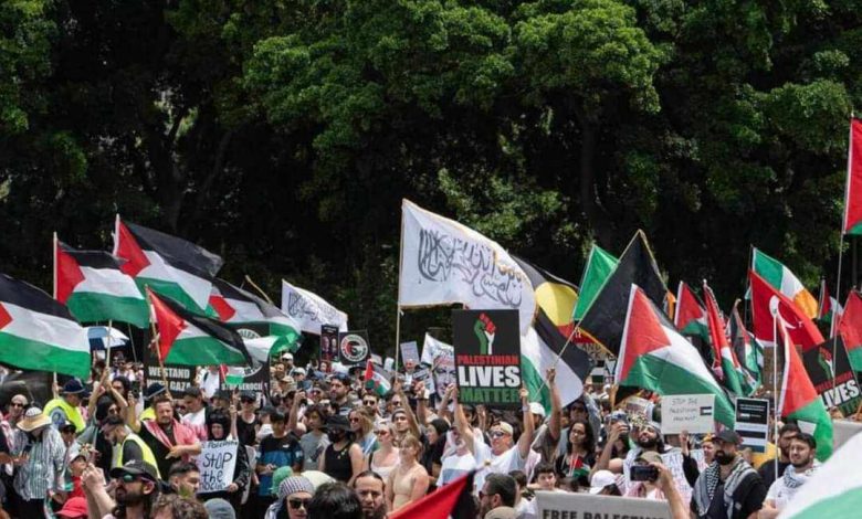 مظاهرة حاشدة احتجاجا على الاحتفال بالمنتخب الوطني وغزة تعاني