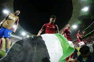 بهتاف “بالروح بالدم نفديكي يا فلسطين” احتفل لاعبين الأهلي مع الجماهير في ملعب الجوهرة بمدينة جدة بالسعودية لتأهلهم للدور قبل النهائي لبطولة كأس العالم للأندية .