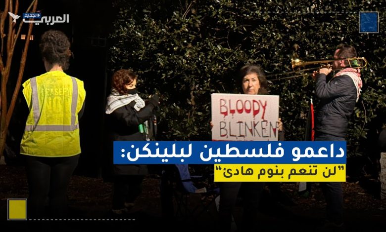 واستخدم المتظاهرون الموسيقى والأغاني وآلات موسيقية وصافرات خلال تظاهرهم أمام منزل بلينكن، مؤكدين أنه “لن يرتاح في بيته بسبب دعمه الكامل للإبادة الجماعية في غزة، وتصريحاته وموقف الحكومة الأميركية”.