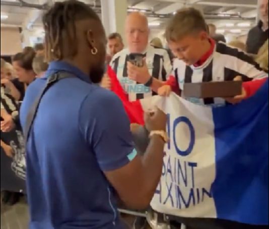 نشر موقع ” سكاي نيوز عربية ” فيديو  يظهر نجم فريق نيوكاسل الإنجليزي ألان سان ماكسيمان وهو يفاجئ أحد المشجعين  بهدية ثمينة عبارة عن ساعة ماركة روليكس غالية الثمن .