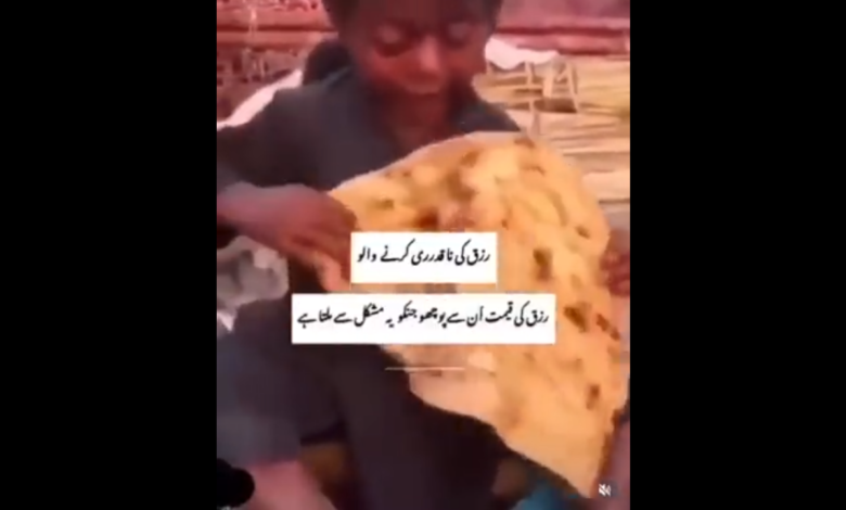 بالفيديو: فرحة عارمة لطفل وجد رغيف خبز