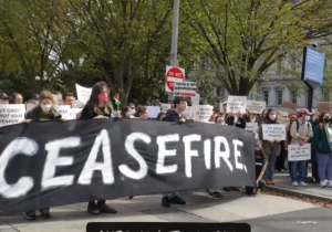 وقد قامت الشرطة الأميركية باعتقال مجموعة من النشطاء ، ولكنهم يتجمعون مرة اخرى للاعراب عن رفضهم لسياسة ادارة بايدن المنحازة لاسرائيل .