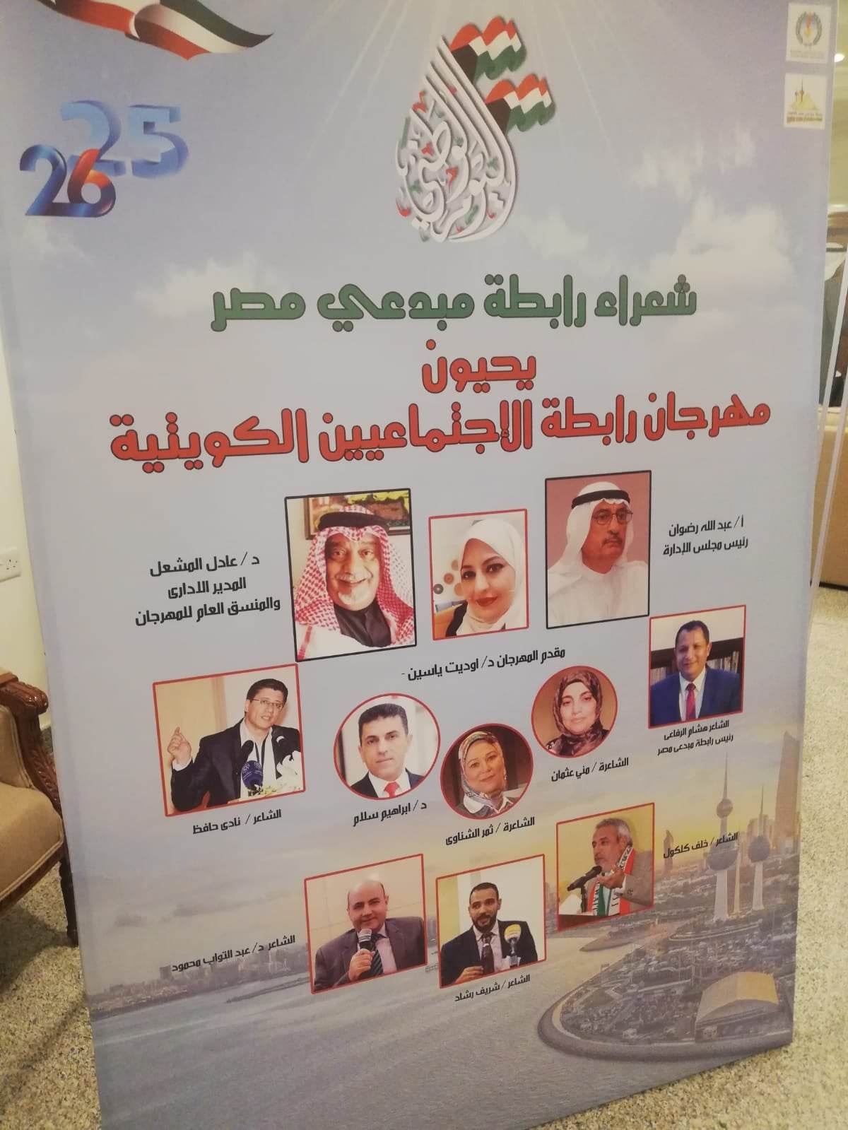 قدم شعراء رابطة مبدعي مصر باشراف الشاعر هشام الرفاعي ضمن الاحتفالية أمسية شعرية في حب الكويت شارك فيها كل من الشعراء نادي حافظ ومنى عثمان وثمر الشناوي والدكتور ابراهيم سلام وعبد التواب محمود وشريف رشاد وخلف كلكول