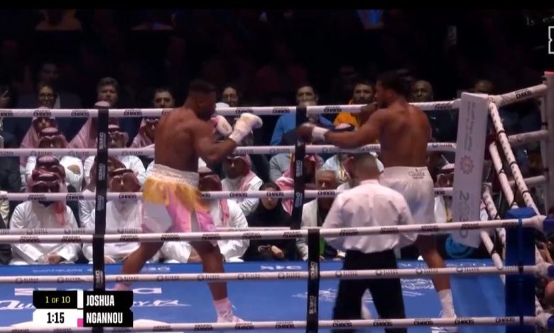 بحضور تركي ال الشيخ وعمرو دياب ورونالدو جوشوا يدمّر نغانو في معركة الاقوي ضد الاقوي