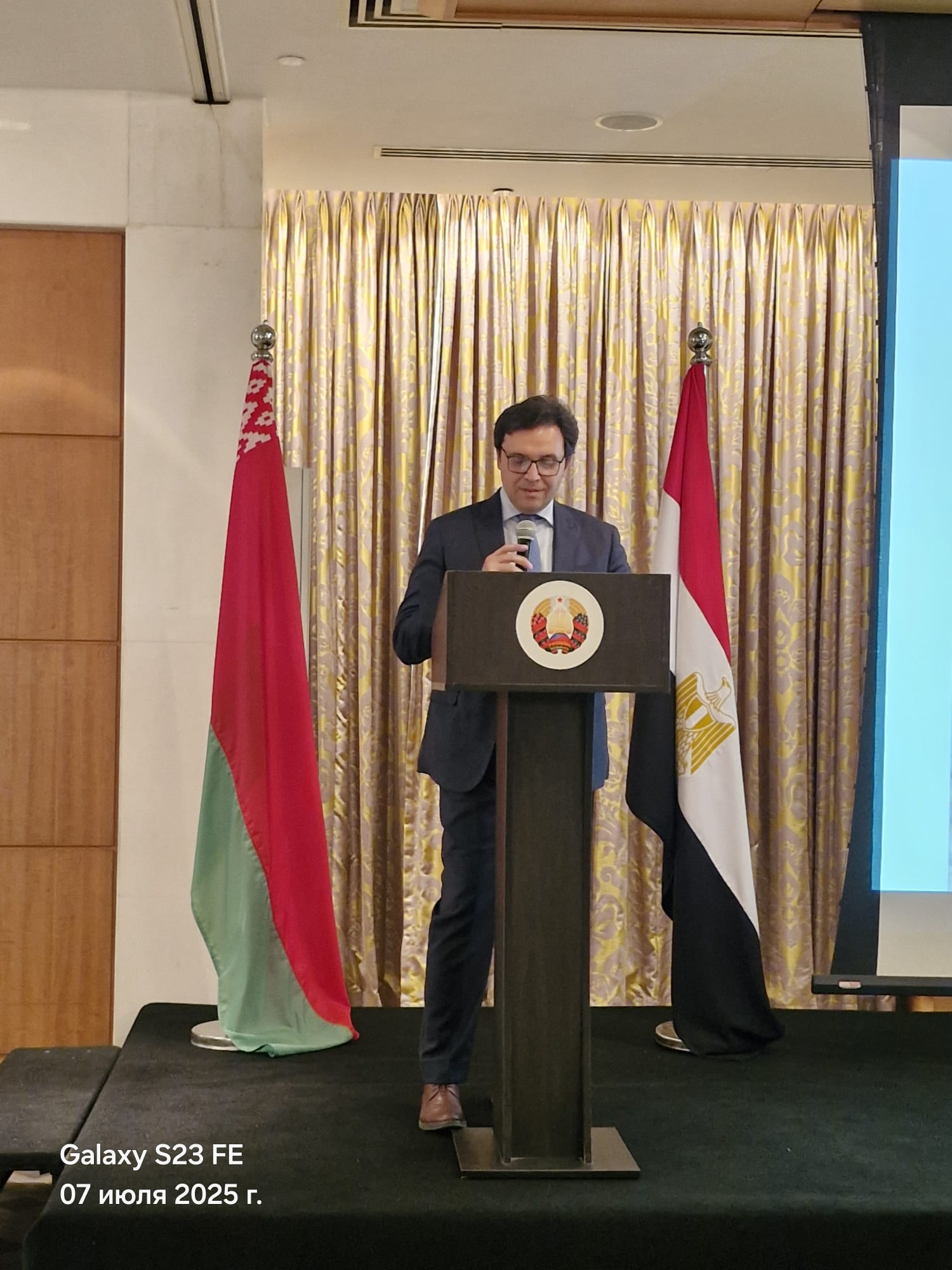 نظمت سفارة بيلاروس بالقاهرة احتفالية بمناسبة اليوم الوطني لجمهورية بيلاروس بحضور وزير الثقافة المصري د. احمد فؤاد هنو، وسفراء الدول الأجنبية تقدمهم سفير روسيا الاتحادية جيورجي بوريسينكو، ود.ابراهيم كامل رئيس جمعية الصداقة المصرية الروسية ، والسفير عزت سعد مدير المركز المصري للتعاون الخارجي ،ود.صالح هاشم رئيس اتحاد الجامعات العربية السابق، ووفد من أعضاء جمعية خريجي الجامعات الروسية والسوفيتية برئاسة شريف جاد،ود. ضحي عاصي عضو مجلس النواب، ود.محمد نصر الجبالي عميد كلية الالسن جامعة الأقصر سابقا.