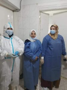 كما قام كلاً من الدكتورة مروة شلتوت رئيس فريق مكافحة العدوي بمساعدة مس ولاء فؤاد عضو الفريق بعمل الاجراءات اللازمة للتعقيم والتطهير طبقاً للمعايير القياسية لمكافحة العدوى .
