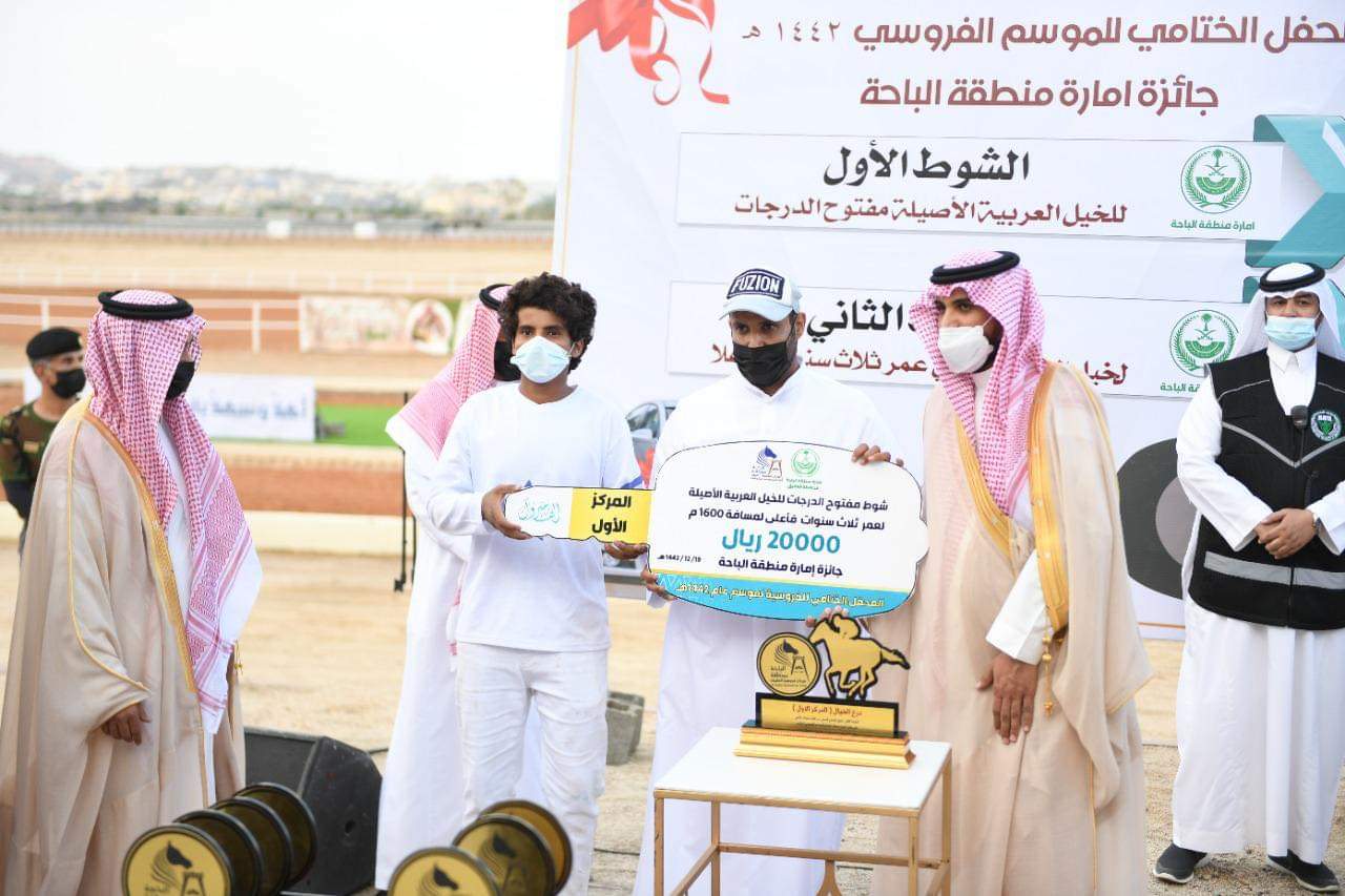 وفي ختام السباق كرّم سعادة وكيل إمارة منطقة الباحة الفائزين ،كما كرّم الجهات المنظمة والداعمة لمحافل الفروسية للعام الحالي 1442هـ .