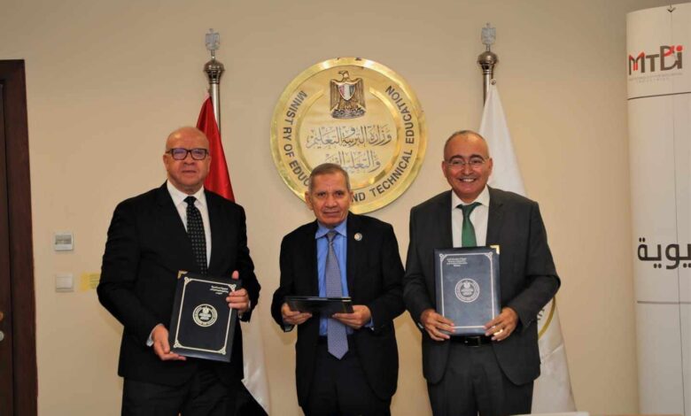 وقعت وزارة التربية والتعليم والتعليم الفني، اليوم الثلاثاء، بروتوكول تعاون مشترك مع شركة مصر لتكنولوجيا الصناعات الحيوية MTBI وصندوق الاستثمار القومي الخيري للتعليم (التعليم حياة) لإنشاء مدرسة مصر الحيوية للتكنولوجيا التطبيقية، والمتخصصة بمجالات الصناعات التكنولوجيا الحيوية.