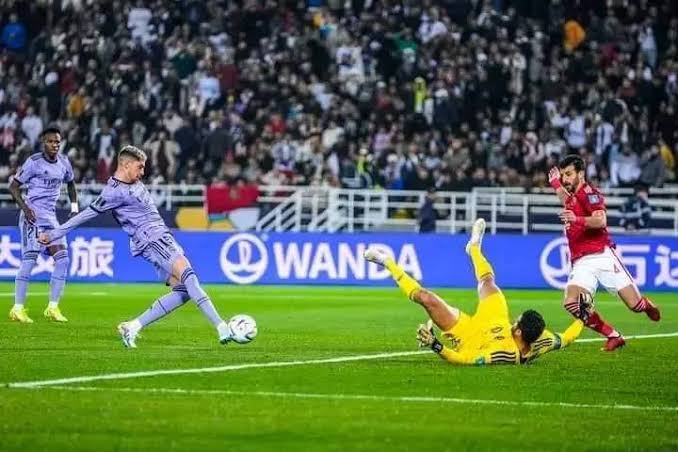 وتصدى محمد الشناوي لهجمة ريال مدريد بعد تسديدة رودريجو ولكن ارتدت الكرة إلى فالفيردي الذي راوغ دفاع الأهلي وسددها على يمين حارس مرمى الأهلي في الدقيقة 46.