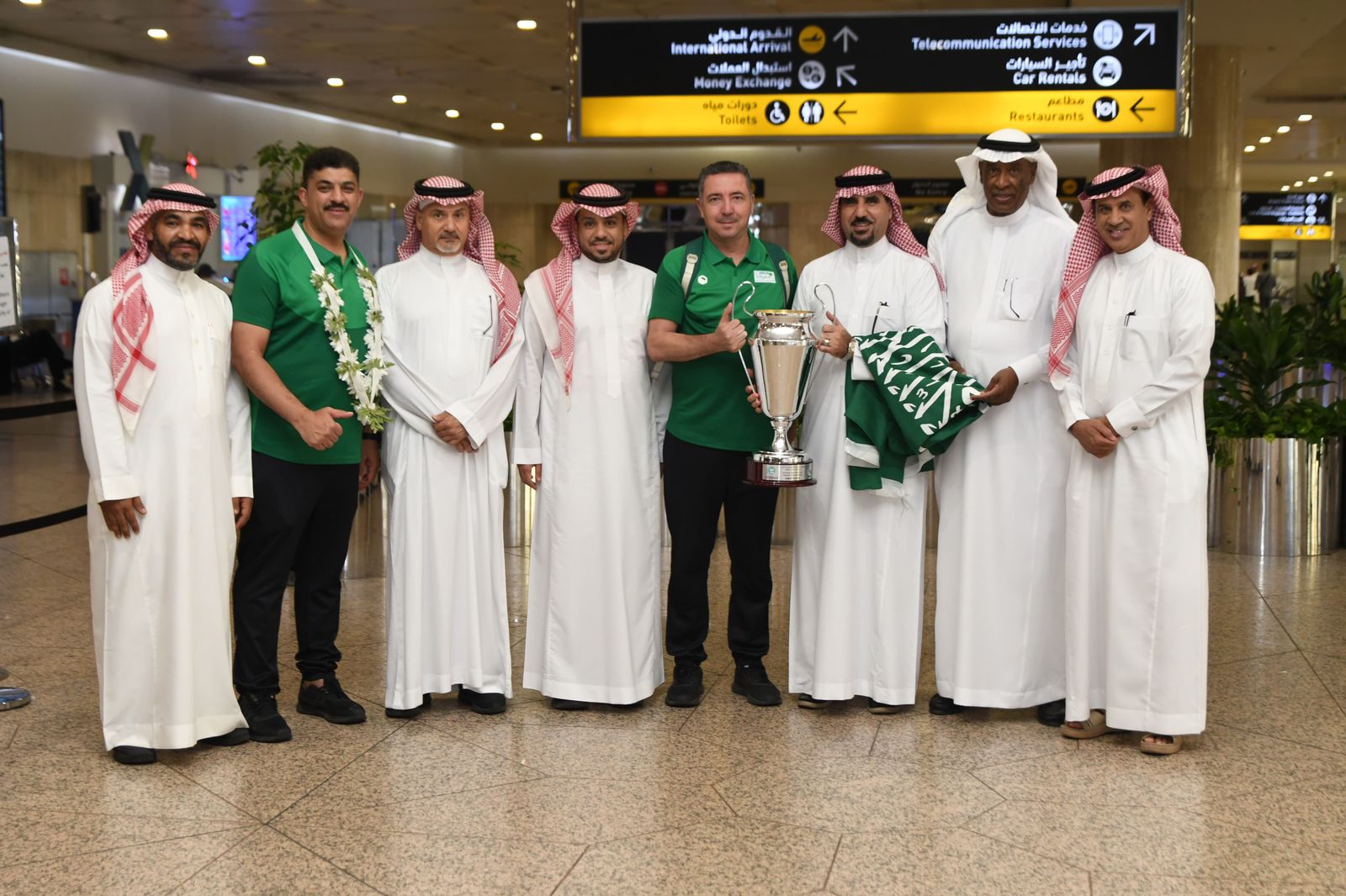 وصلت بعثة المنتخب السعودي للكرة الطائرة إلى ارض الوطن وبالتحديد مطار الملك فهد الدولي بالدمام بعد أن توج بكأس ذهب بطولة غرب آسيا لمنتخبات الشباب الثانية تحت 20 عاماً للكرة الطائرة التي اختتمت بمدينة العين بالامارات وكان في استقبال البعثة عدد من منسوبي الاتحاد يتقدمهم عضوا مجلس الادارة ابراهيم ال ابراهيم و عبدالمحسن ال عبيد