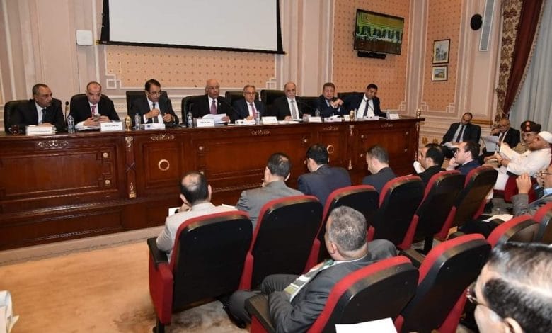 وحضور ممثلي وزارات الإسكان والمرافق والمجتمعات العمرانية، الدفاع، التنمية المحلية، المالية، العدل، الأوقاف، الموارد المائية والري، الزراعة واستصلاح الأراضي، التخطيط والتنمية الاقتصادية بشأن مناقشة مشروع قانون مقدم من الحكومة بإصدار قانون التصالح في بعض مخالفات البناء وتقنين أوضاعها، ومشروعي قانونين آخرين مقدمين من السادة النواب.
