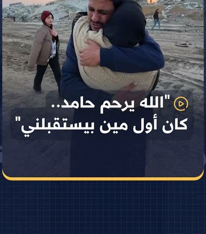 وفي الفيديو، ظهرت الأم وهي تستقبل ابنها في غزة وهو يردد باكيا “الله يرحم حامد.. كان أول واحد بده يستقبلني. فدا الوطن”.