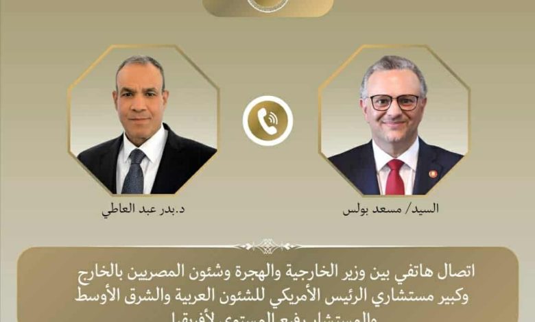 أكدت مصر والولايات المتحدة أهمية التوصل إلى وقف فوري ودائم لإطلاق النار في السودان، وذلك خلال اتصال هاتفي بين وزير الخارجية الدكتور بدر عبد العاطي ومسعد بولس، كبير مستشاري الرئيس الأمريكى للشؤون العربية والإفريقية، في إطار مشاورات دبلوماسية مكثّفة لاحتواء الأزمة المتصاعدة في البلاد.
