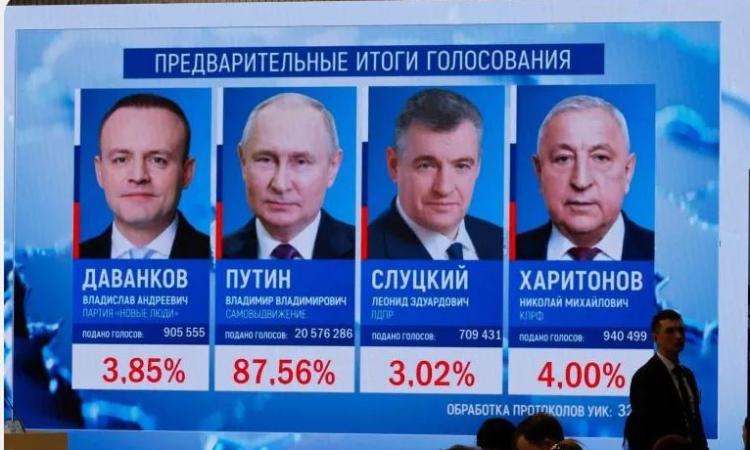 أعلن مركز معلومات لجنة الانتخابات المركزية الروسية فوز الرئيس فلاديمير بوتين بالانتخابات الرئاسية الروسية ب` 87.28%، وذلك بعد فرز 100% من أوراق الاقتراع.