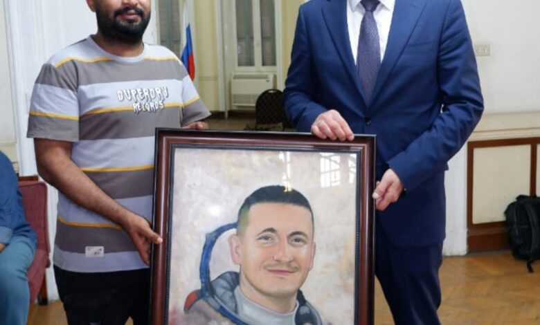 بورتريه للسفير ورائد الفضاء الروسى فى ورشة الرسم الحر