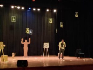 المخرج عبد الرحمن أيمن أحمد تدور أحداث العرض المسرحي حول الدنيا متحف وان الإنسان مسئول عن لوحته الفنية