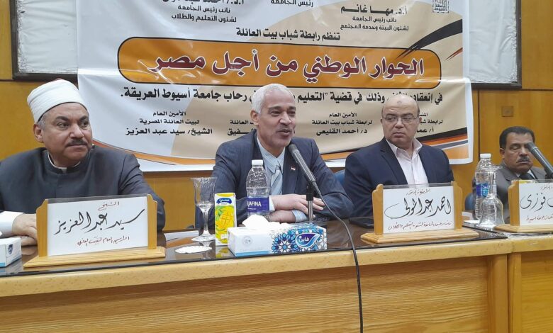 بيت العائلة المصرية باسيوط ينظم الحوار الوطني من أجل مصر بجامعة أسيوط