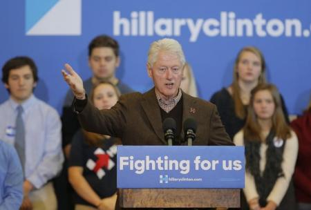 شارك الرئيس الأمريكي الأسبق بيل كلينتون في الحملة الانتخابية لزوجته هيلاري كلينتون التي تسعى لخوض انتخابات الرئاسة الأمريكية باسم الحزب الديمقراطي مبرزا دورها في العمل العام ومتفاديا التحدث عن نفسه.