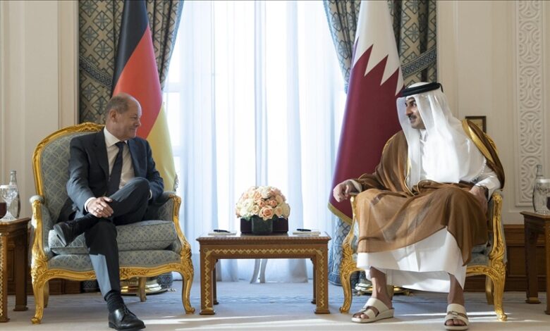وقال المستشار الألماني عقب مباحثات قمة مع الشيخ تميم بن حمد آل ثاني أمير دولة قطر : تحدثت مع أمير قطر بشأن تسليم شحنات الغاز الطبيعي المسال، ونريد تحقيق المزيد من التقدم.