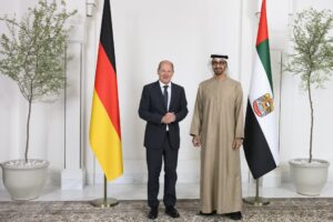 وقبل لقائه رئيس الدولة الشيخ محمد بن زايد آل نهيان، في ثاني جولة خليجية، أعلن المستشار الألماني أولاف شولتس عن تقدّم بالمحادثات التي يجريها مع دول الخليج العربي لشراء الغاز والديزل.