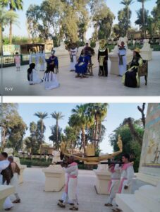 ثم تطور الهدف الى عرض التاريخ باحداثه بصورته الحية في شكل تمثيلي يؤديها اشخاص حقيقيون يرتدون ملابس المصري القديم ليجسدو الشعائر الدينية والصناعات الحرفية باستخدام ادوات من الطبيعة كما استخدمها المصري القديم.