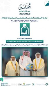 وأوضح المحارب أن جمعية إنسان حازت على الجائزة لتميزها في تقديم الخدمات الاجتماعية للمستفيدين وفق معايير عالية الجودة وتحقيق مؤشرات التميز المؤسسي في كافة أعمالها بما ينعكس إيجاباً على تحسين جودة حياة المستفيدين ببرامج نوعية وتحقيق الاستدامة لأبناء وأسر الجمعية وتمكينهم في مختلف المسارات .