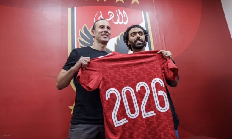 وكتبت الصفحة الرسمية للأهلي على موقع التواصل الاجتماعي ‘فيس بوك’، ‘رحلة لاعبنا حسين الشحات في الدفاع عن شعار نادي القرن مستمرة إلى 2026’.