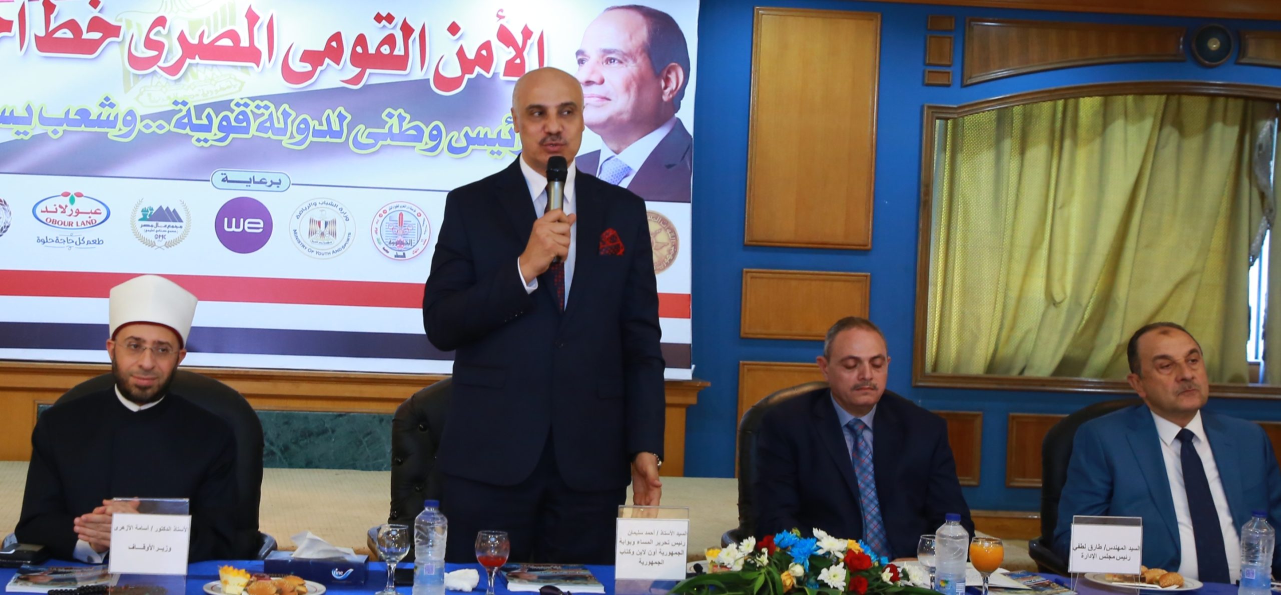 وفي كلمته أكد المهندس عبد الصادق الشوربجي رئيس الهيئة الوطنية للصحافة أن الأمن القومي المصري ومحدداته قضية تحتل أولوية قصوى لدى الرئيس السيسي،وهو يشدد دائما على أن مهمته الأولى هي الحفاظ على مصر والمصريين، والحفاظ على محددات الأمن القومي المصري في ضوء التحديات الإقليمية والدولية، كما وضع ملف بناء الإنسان المصري على رأس قائمة الأولويات، واهتمت الدولة بتحصين المواطن بالوعي الحقيقي في مواجهة الوعي الزائف ومحاولات التشكيك التي طالت كل شيء باستخدام الفضائيات ومواقع التواصل الإجتماعي، وتبصير المواطن بالتحديات والانجازات التي تحققت على أرض الواقع.