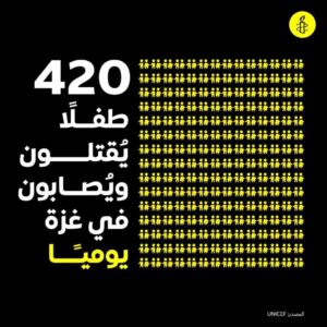 “إن العالم يراقب بذعر مع وقوع مزيد ومزيد من الخسائر في أرواح المدنيين كل يوم في خضم عمليات القصف الذي لا ينقطع والعمليات البرية المستمرة التي تقوم بها إسرائيل، وتَكشُّف فصول الكارثة الإنسانية غير المسبوقة التي هي من صنع البشر في قطاع غزة المحتل. لقد قُتل أكثر من 10,800 فلسطيني في غزة من ضمنهم ما لا يقل عن 4,200 طفل في الأسابيع الأربعة الأخيرة. وفي إسرائيل، قُتل 1,400 شخص على الأقل، وأُخذ ما يزيد على 200 شخص كرهائن، من ضمنهم 33 طفلًا، وذلك على يد حماس وغيرها من الجماعات المسلحة في 7 أكتوبر/تشرين الأول.