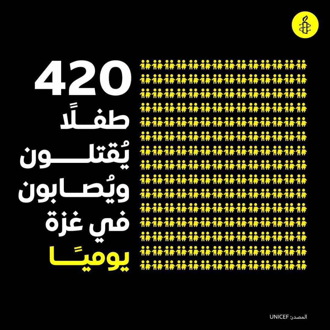 عريضة لمنظمة العفو الدولية المطالبِة بوقف إطلاق النار مدعومة باكثر من المليون توقيع