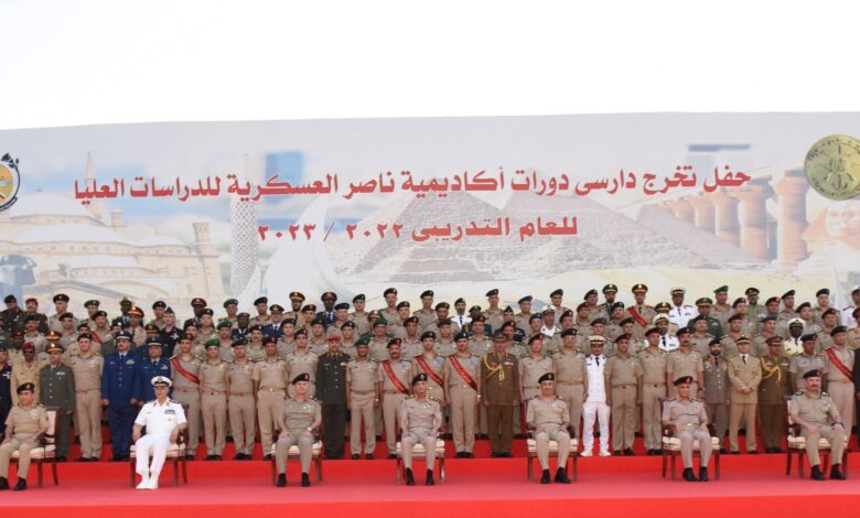 شهد الفريق أول / محمد زكى القائد العام للقوات المسلحة وزير الدفاع والإنتاج الحربى اليوم الخميس 22 يونيو 2023 إحتفال القوات المسلحة بتخرج دفعات جديدة من أكاديمية ناصر العسكرية للدراسات العليا وكلية القادة والأركان ، والتى تضم الدورات ( 46 ) من كلية الحرب العليا ، والدورة ( 52 ) من كلية الدفاع الوطنى ، والدورة ( 24 ) للتأهيل العسكرى لقيادة التشكيلات التعبوية ، كذلك تخرج الدورات ( 72 ) أركان حرب عام ، والـدورتان ( 44 ، 45 ) أركان حرب تخصصية والتى تضم عدد من الدارسين المصريين العسكريين والمدنيين وعدد من الوافدين من الدول الشقيقة والصديقة .