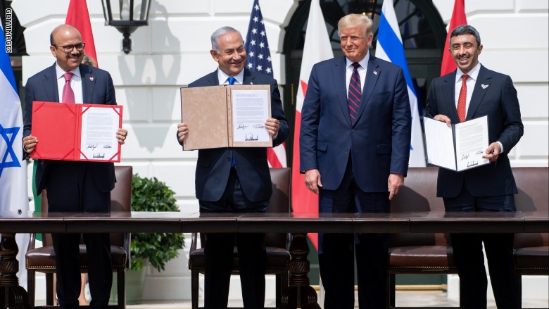 ووقعت الإمارات وإسرائيل اتفاقية سلام لإقامة علاقات شاملة، فيما وقعت البحرين وإسرائيل إعلان تأييد السلام تمهيدا لاتفاق سلام بينهما، بمشاركة الرئيس الأمريكي دونالد ترامب ورئيس الوزراء الإسرائيلي بنيامين نتنياهو ووزيري الخارجية الإماراتي الشيخ عبدالله بن زايد والبحريني عبداللطيف الزياني.
