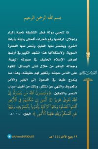 وتابع قائلا: “هذا مما يندرج طبعا في الدعوة إلى الخير والأمر بالمعروف والنهي عن المنكر وذلك من أقوى أسباب النصر والتمكين..”