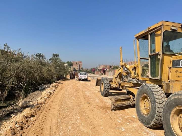 تسوية ووضع التربة الزلطية بشارع كوبري محمد همام تمهيدا لرصفه بمدينة البداري بأسيوط