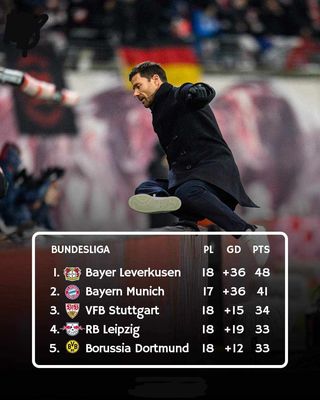 فريق بايرن ليفركوزن .. هذا الموسم مع تشافي ألونسو ، يلعب كرة هجومية ويحصد صدارة الدوري بعيد ب 7 نقاط على المطارد بايرن.