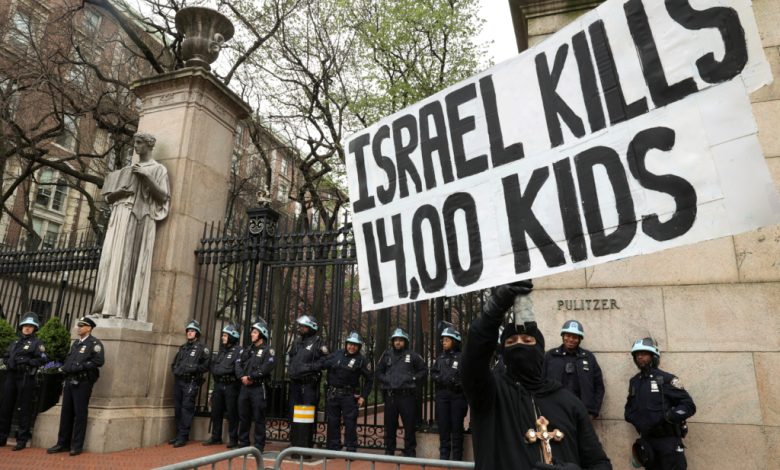 وجاء قرار إلغاء الفصول الدراسية في حرم جامعة كولومبيا في نيويورك بعد اعتقال أكثر من 100 محتج نصب بعضهم عشرات الخيام فيما قالت الجامعة إنه احتجاج غير مصرح به عطّل الأنشطة الدراسية.