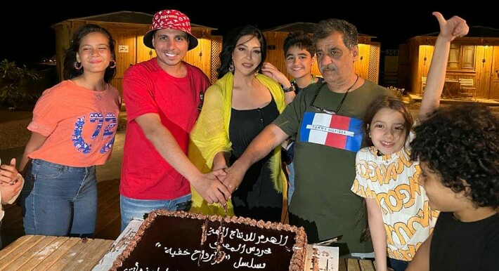 جاء ذلك بعد انتهاء يوم تصوير طويل مليء بالمشاهد القوية ورغم تقلب الطقس وهطول الامطار الا ان فريق عمل المسلسل ابى ان ينتهي اليوم دون الاحتفال وتقطيع التورتة ايذانا ببدء عام جديد سعيد على الفنانة سمية الخشاب ويكون فأل حسن للعمل وكل العاملين به.