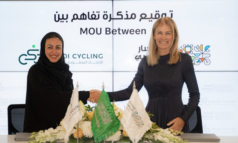 ومثل الجانبين خلال التوقيع أسماء الجاسر نائب رئيس الاتحاد السعودي للدراجات وجين ماكجيفرن الرئيس التنفيذي لمؤسسة المسار الرياضي.
