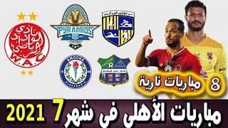 يخوض النادي الأهلي عدة مباريات خلال شهر يوليو الجاري ويخوض الفريق الأحمر عدد 8 مباريات بداءها بمباراة الأمس أمام فريق بيراميدز وانتهت بالتعادل الإيجابي 2 – 2 وتستكمل باقي المباريات القوية والصعبة للفريق الأول بالنادي الأهلي على مدار شهر يوليو الجاري ٠