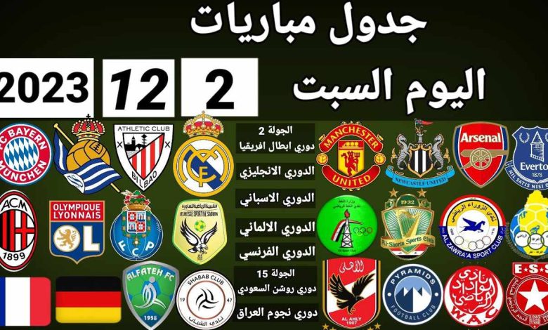 يقدم لكم موقع «وضوح الإخباري» مواعيد مباريات اليوم السبت 2 ديسمبر 2023 والقنوات الناقله لها.