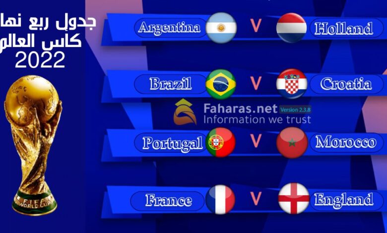 تعرف على مواعيد مباريات ربع النهائي بكأس العالم قطر 2022 .