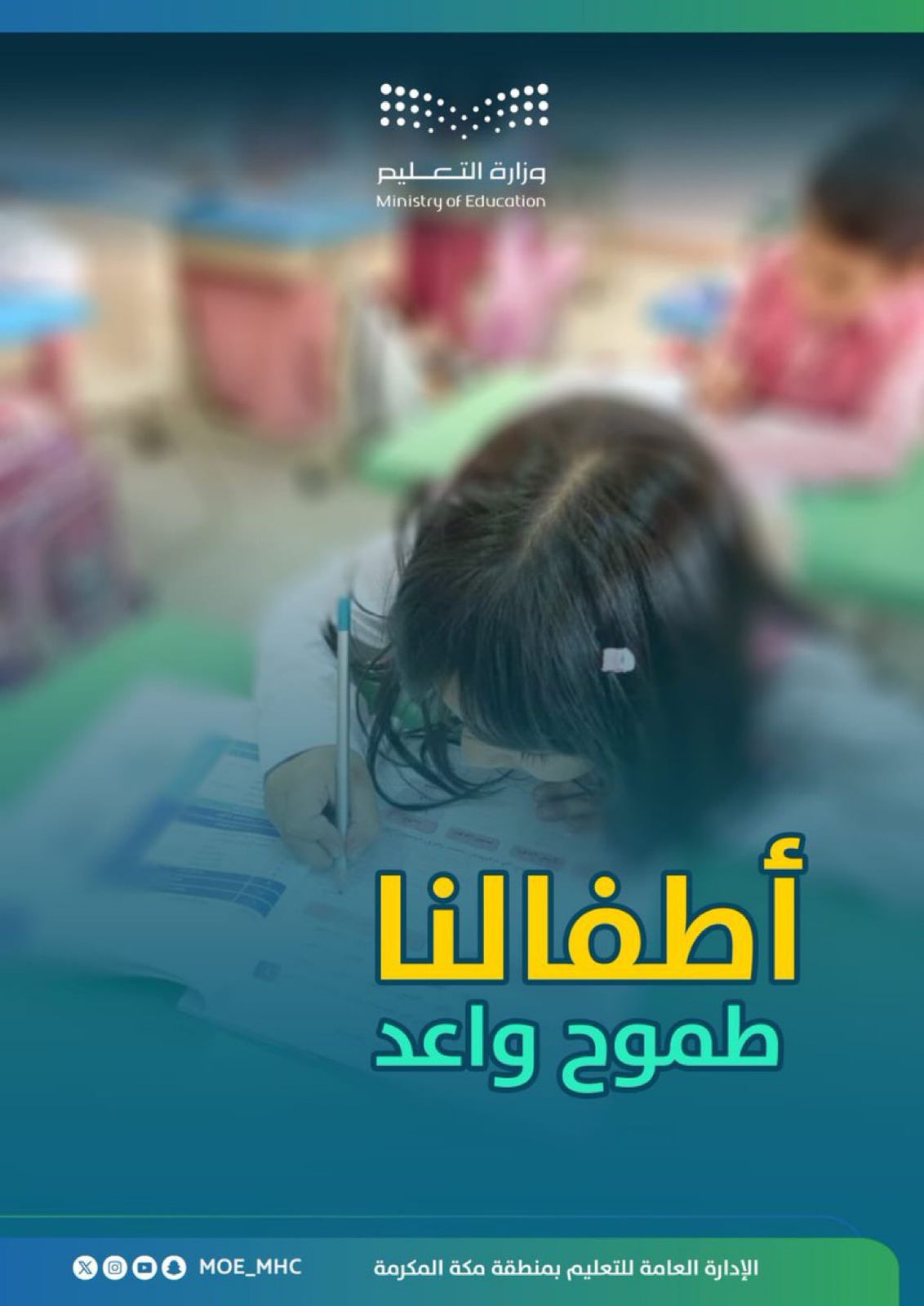 تزامنًا مع اليوم العالمي للطفل ، تطلق الإدارة العامة للتعليم بمنطقة مكة المكرمة ممثلة في إدارة الطفولة المبكرة مهرجان الطفل تحت شعار “مستقبل تعليمي أفضل لكل طفل ” وذلك بمشاركة 224 روضة حكومية، أهلية ،و عالمية ، وذلك من يوم الخميس وحتى يوم الثلاثاء الموافق 19-1446/5/24هـ بهدف تعزيز الترابط الدولي ، وإذكاء الوعي بين أطفال العالم ، وإتاحة نقطة وثب لكل شخص للدفاع عن حقوق الطفل وتعزيزها ، والاحتفال بها وترجمتها إلى أفعال لبناء عالم أفضل.