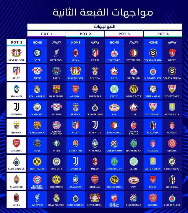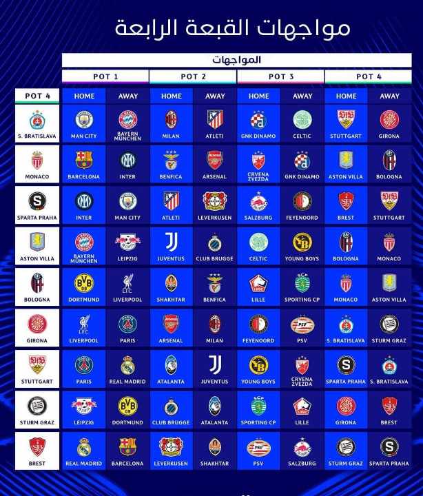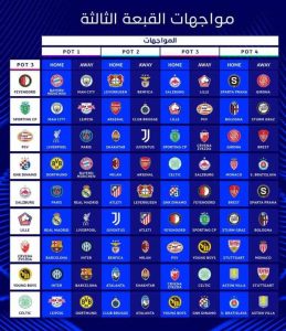 نتائج قرعة دورى ابطال اوروبا الخاصة بالتسع اندية للمستوي الأول.